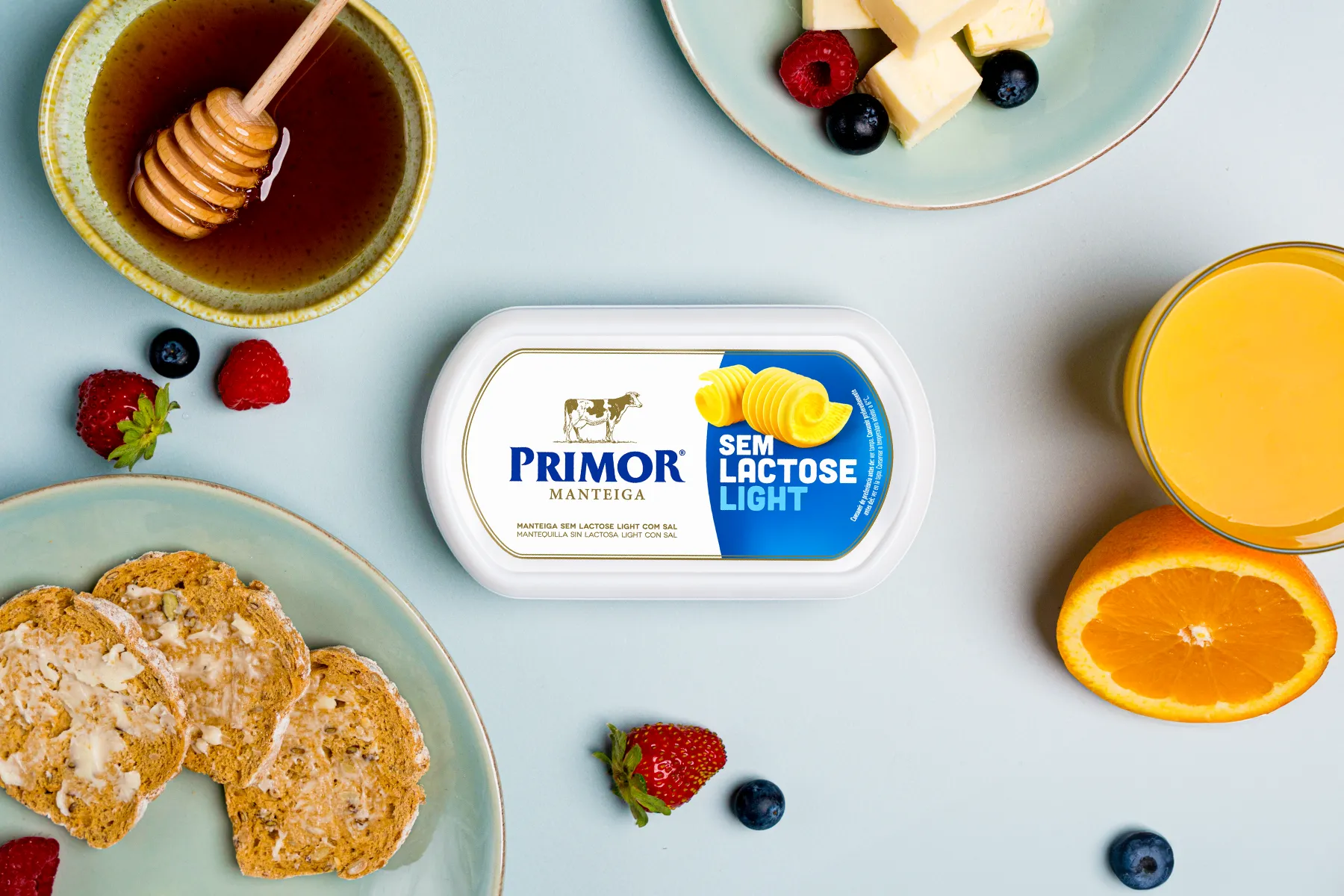 Cremosa, leve, deliciosa. Preparada com a mesma mestria, para abraçar diferentes desejos e redefinir os limites do que é possível. Sim, com Primor Sem Lactose Light é possível saborear uma fatia de pão generosamente barrada com manteiga. Parece simples, mas é sublime. E isto é só o princípio do que pode fazer com a nossa manteiga criada para quem tem intolerância à lactose.